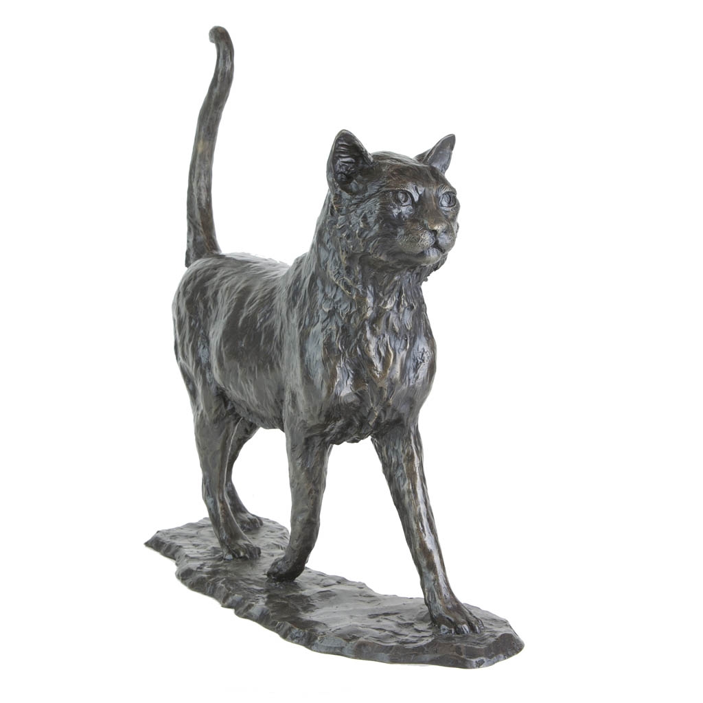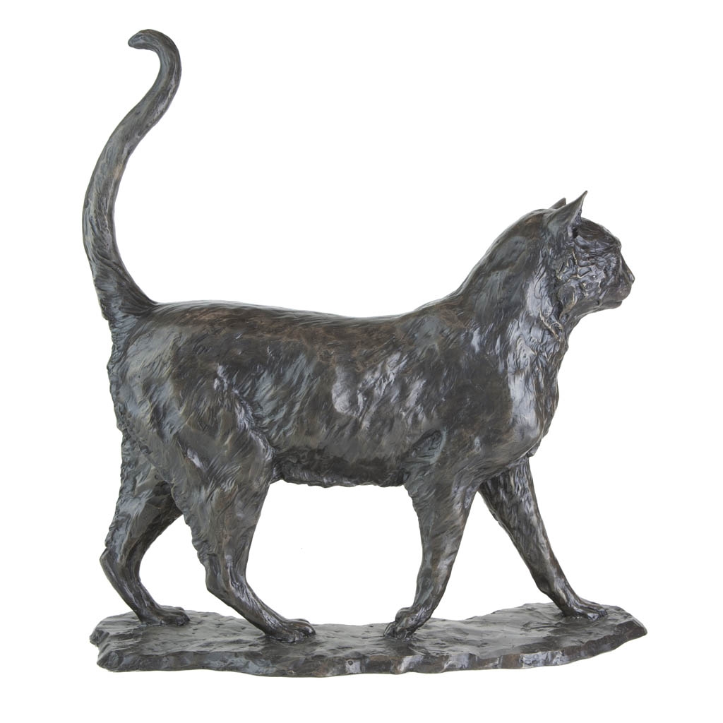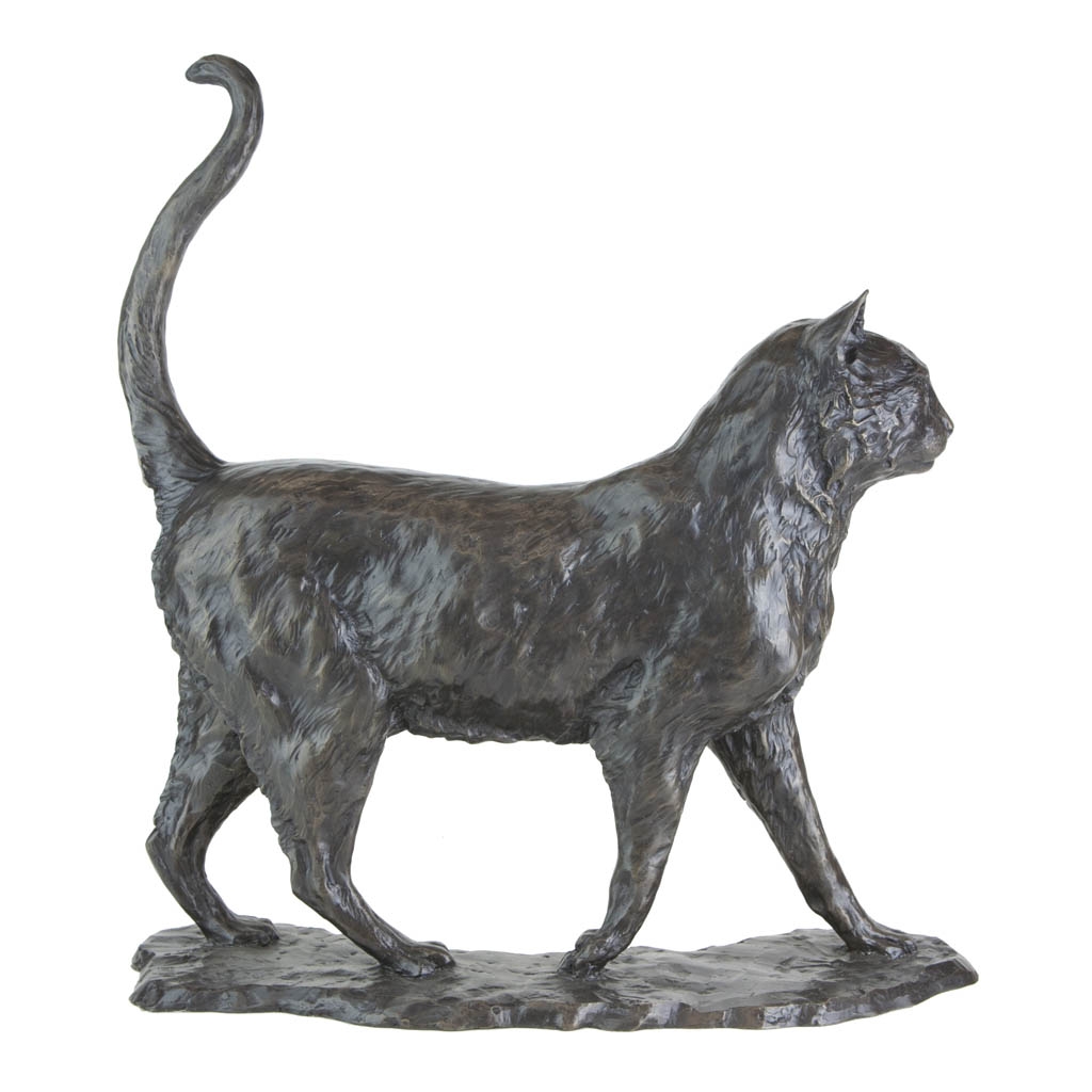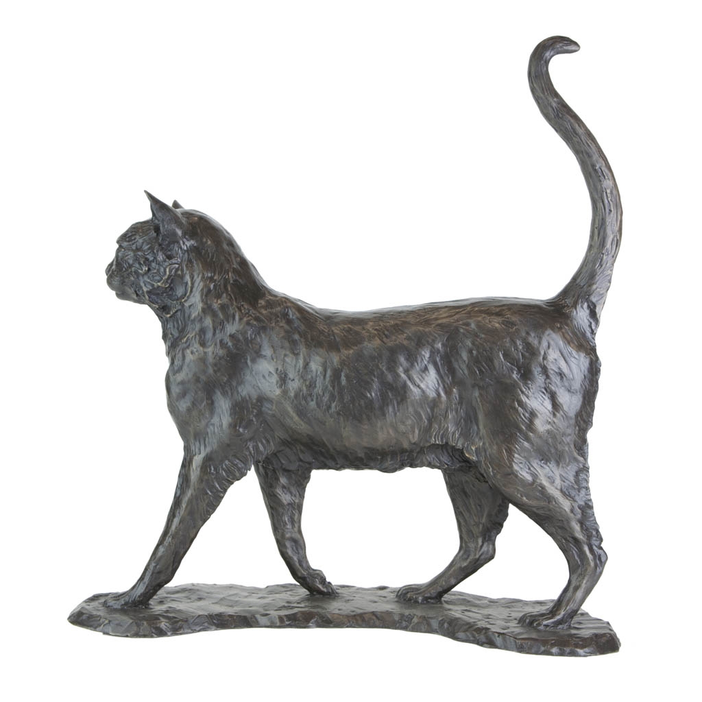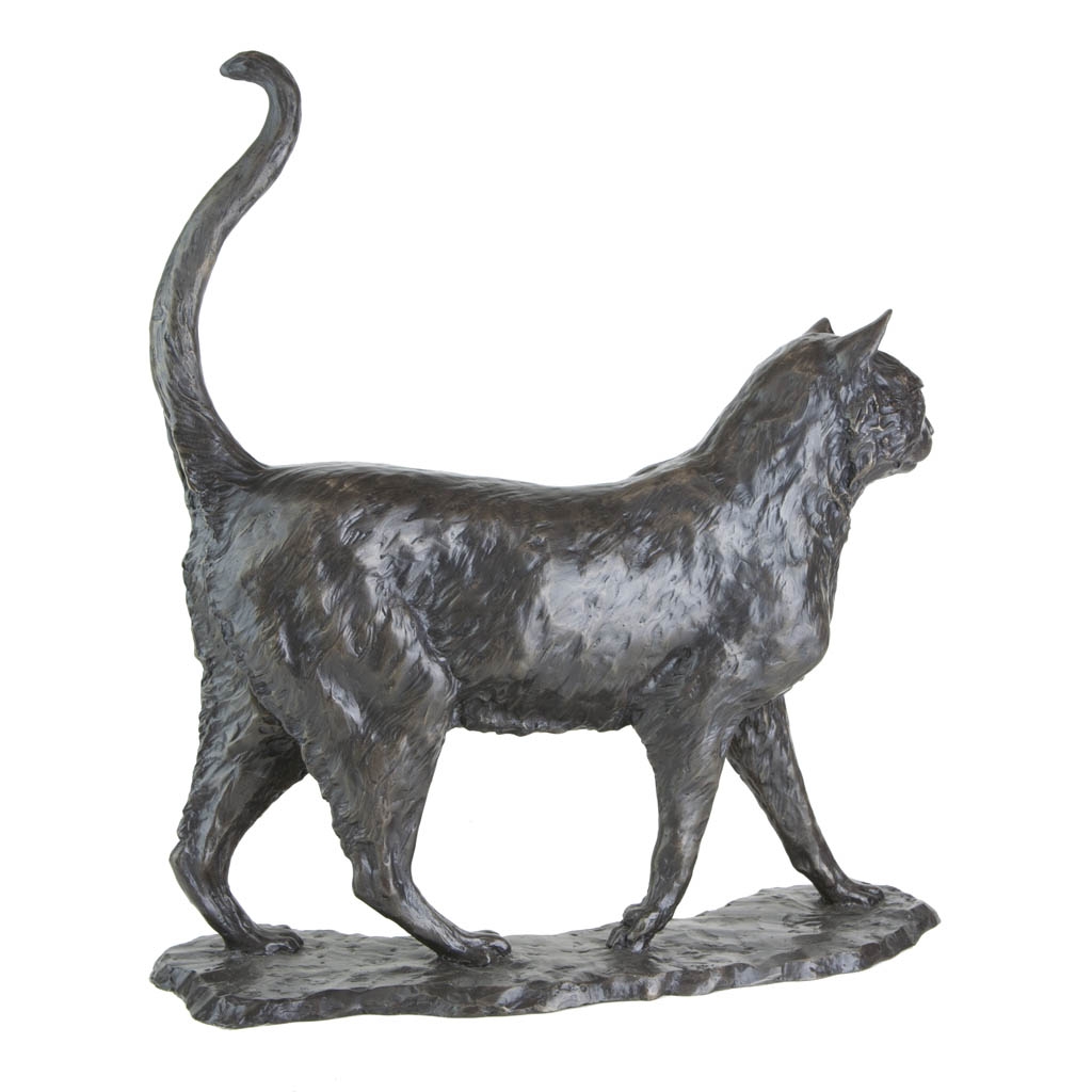 This charming sculpture captures a carefree Walking Cat as it jauntily saunters around its domain, lord of everything it beholds.