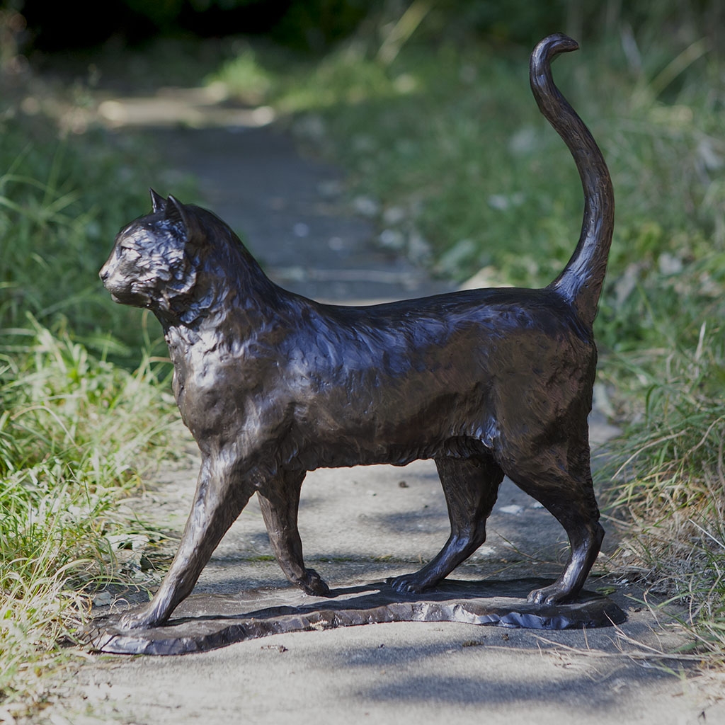 Bronze Cat Sculpture: Garden Walking Cat (Life Sized) by Sue Maclaurin