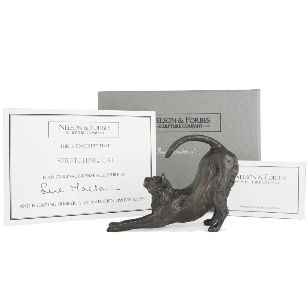 ‘Stretching Cat’ is a solid bronze casting of sculptor Sue Maclaurin’s original sculpture. We cast it as a limited edition of just 250 castings worldwide and individually mark each casting with its own unique edition number as well as our ‘NF’ maker’s mark and Sue Maclaurin’s signature.