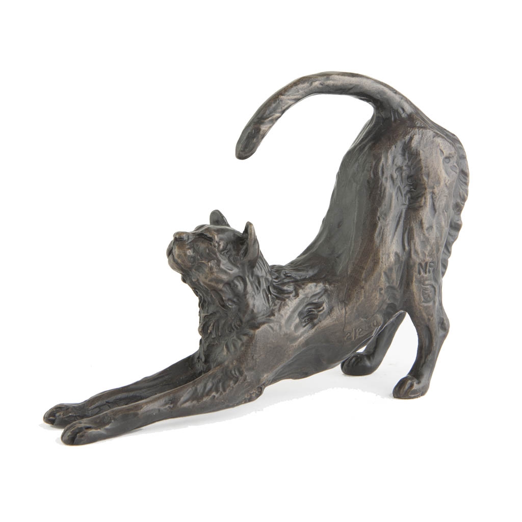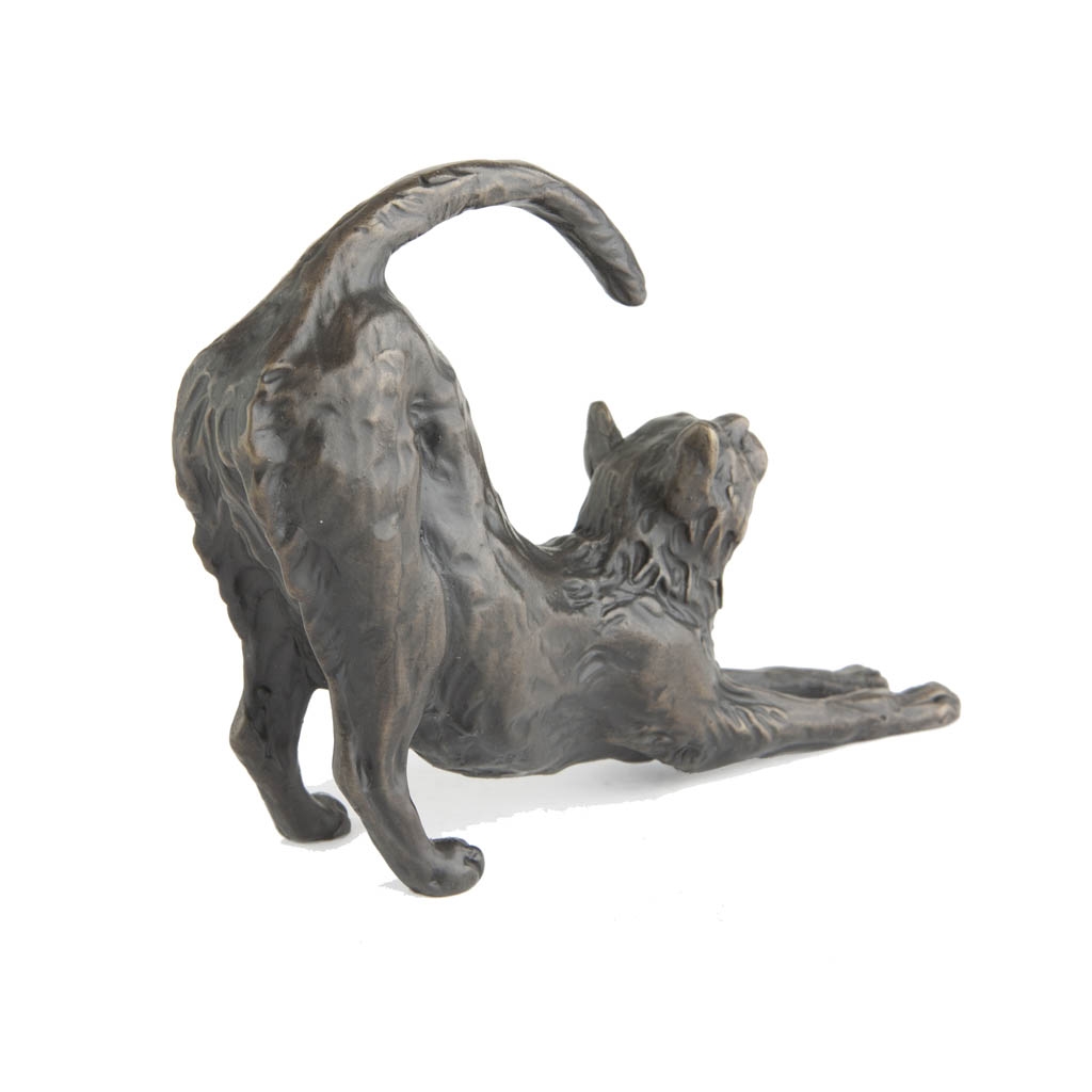 This solid bronze sculpture of a cat at full stretch perfectly captures the languid and athletic nature of a warm and happy cat, gently waking itself up after an afternoon snooze.
