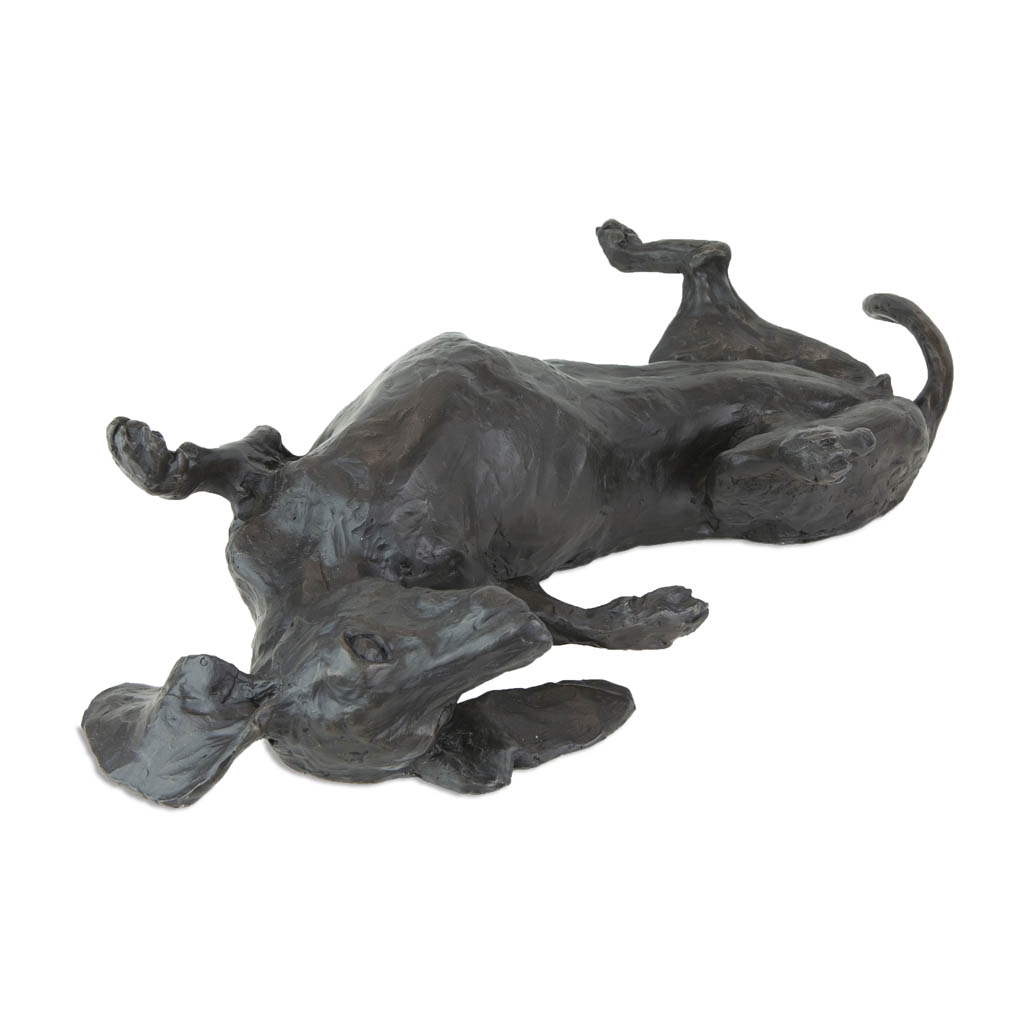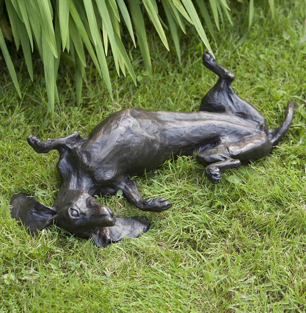 Bronze Dog Sculpture: Garden Rolling Dachshund (Life Size) by Sue Maclaurin