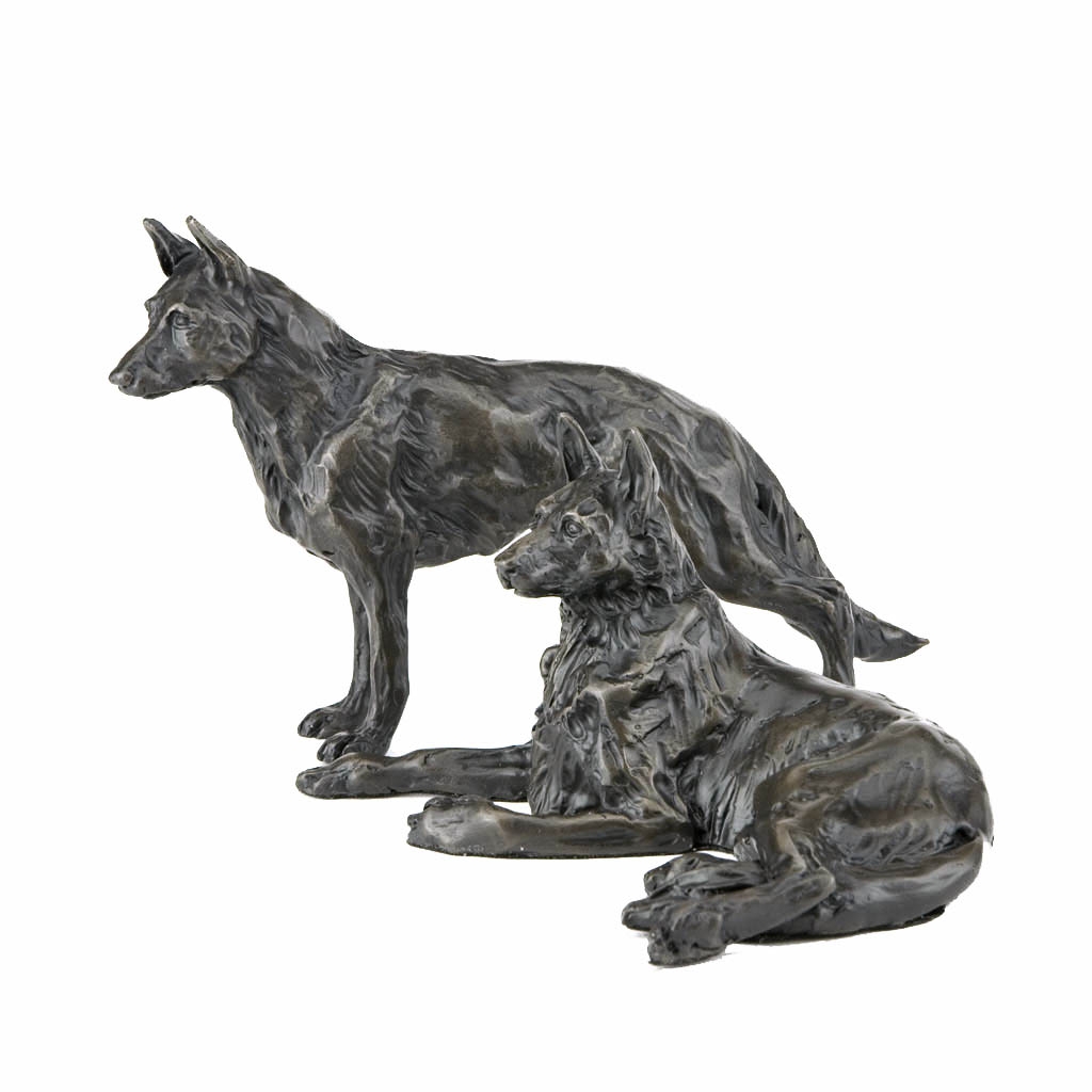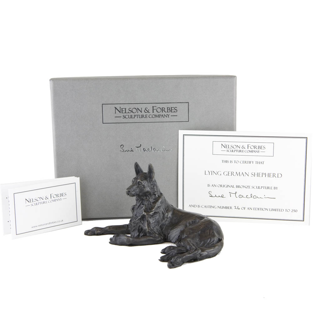 Bronze Dog Sculpture: Lying German Shepherd by Sue Maclaurin