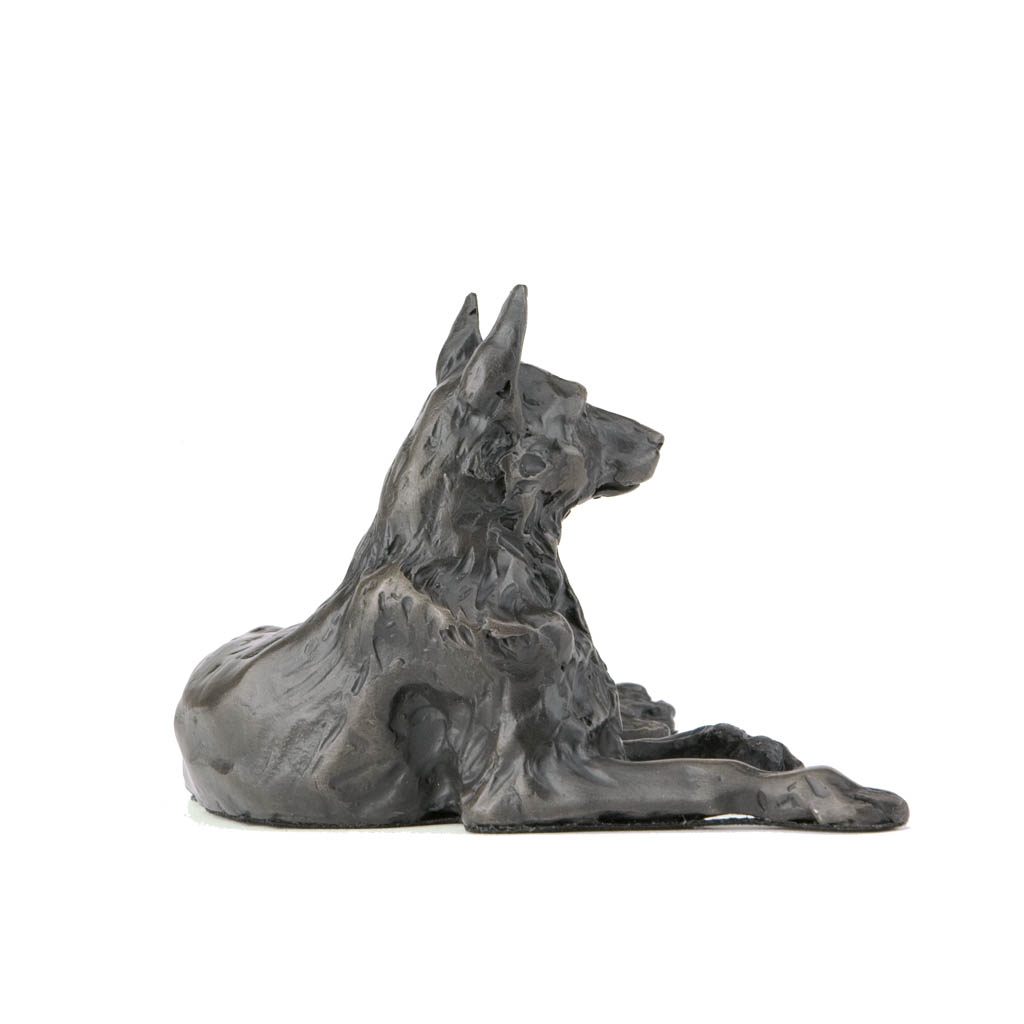 Sue Maclaurin’s sculpture of a Lying German Shepherd beautifully captures the intensity and intelligence of these regal dogs, even when at rest.