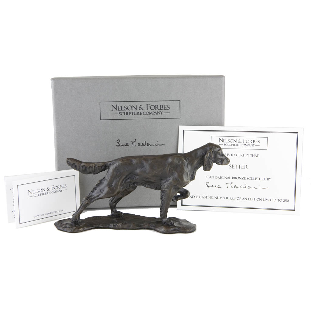 We hand cast this Setter sculpture in solid bronze in our British foundry using the traditional and lengthy lost wax process…. this is NOT made of resin! It is cast as a strictly limited edition of just 250 castings worldwide and arrives beautifully gift boxed with an artist signed and individually numbered certificate of authenticity.