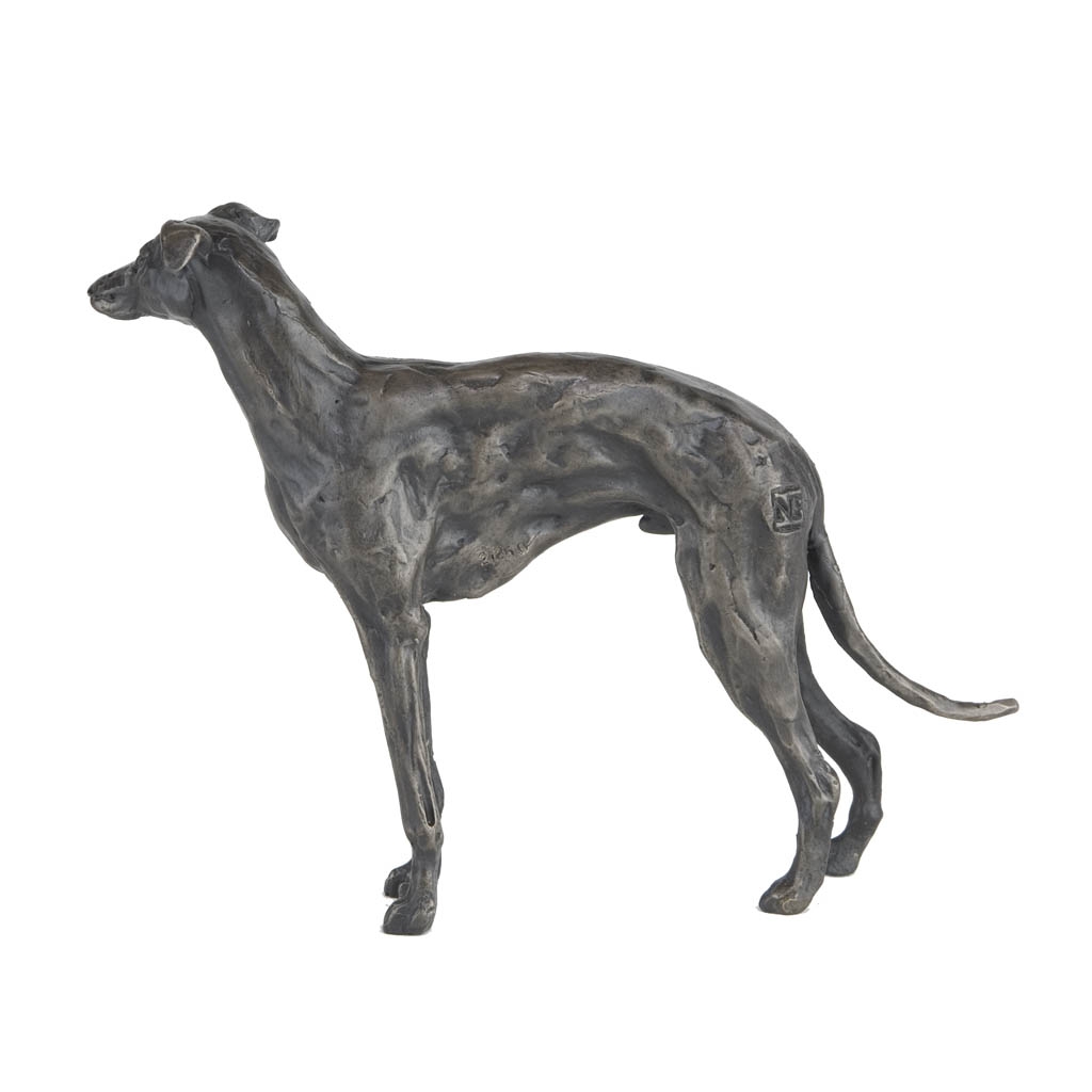 Hand cast in solid foundry bronze in our British foundry, Standing Whippet arrives beautifully gift boxed and accompanied by a numbered Nelson & Forbes certificate of authenticity, hand signed by the artist, Sue Maclaurin. As one of a limited edition of just 250 castings worldwide, every casting bears the artist’s signature, our ‘NF’ maker’s mark and its own unique edition number.