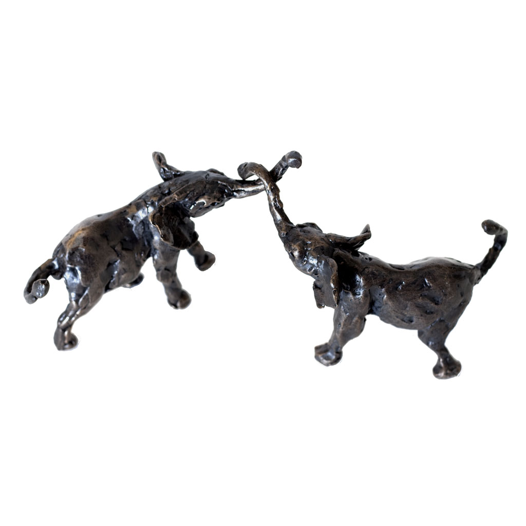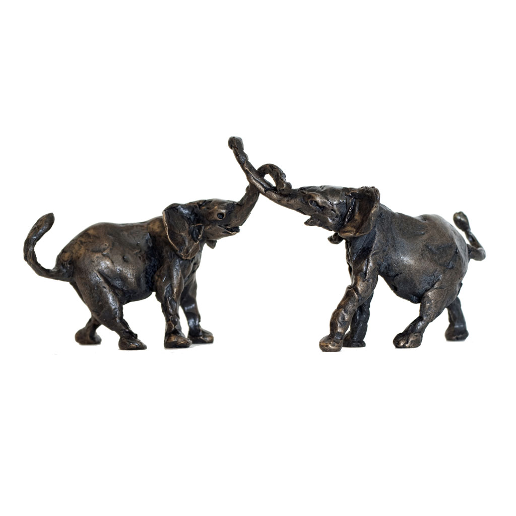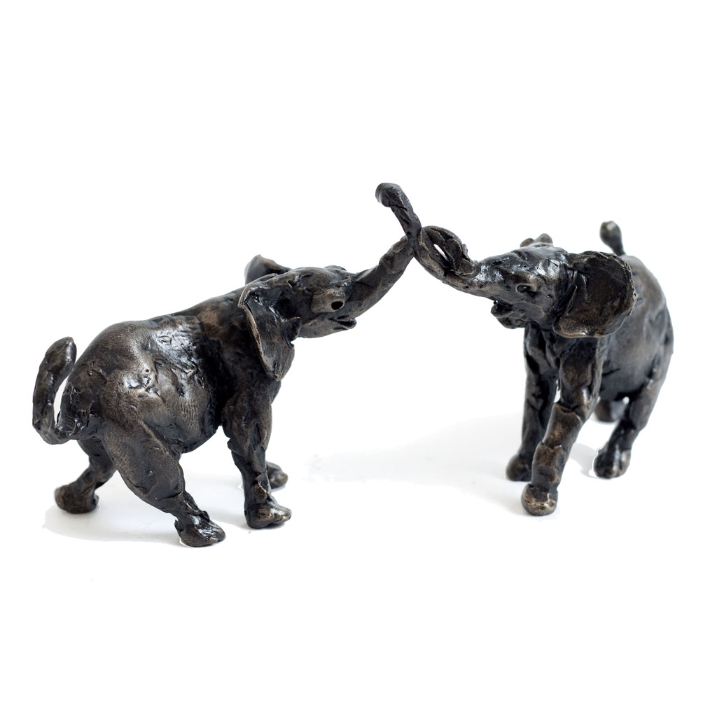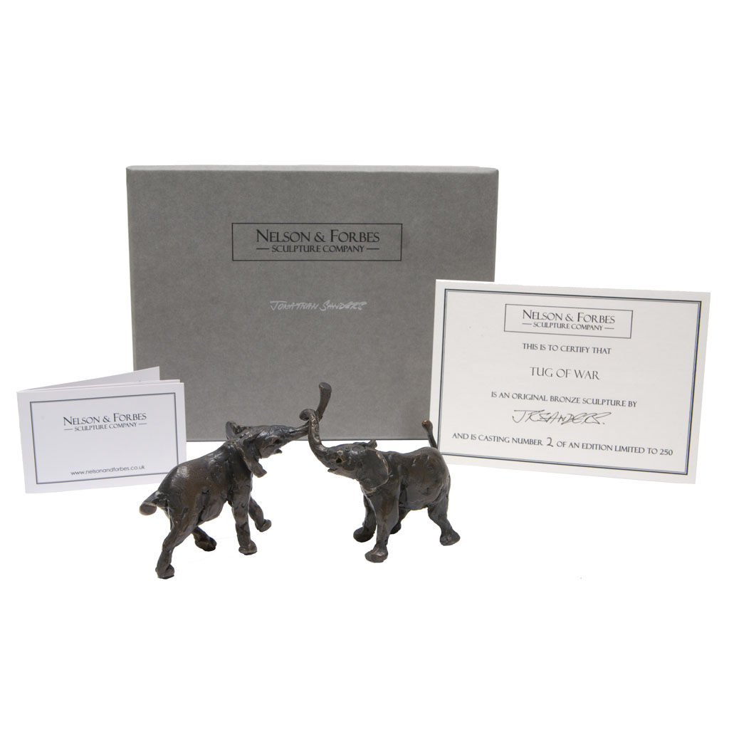 This bronze sculpture of two baby elephants ,Tug of War by Jonathan Sanders, was carefully hand cast in a British foundry by Nelson & Forbes, in an edition of just 250 castings.