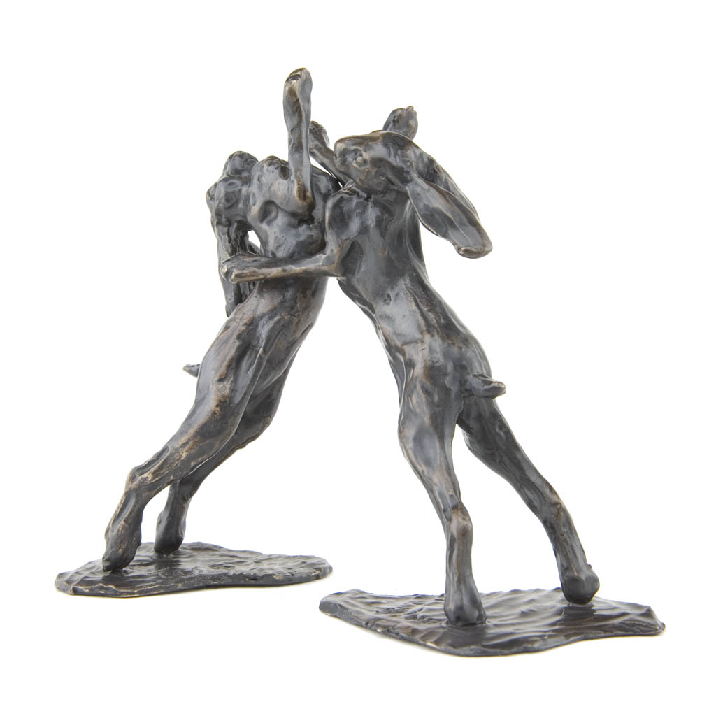 bronze sculpture boxing hares
