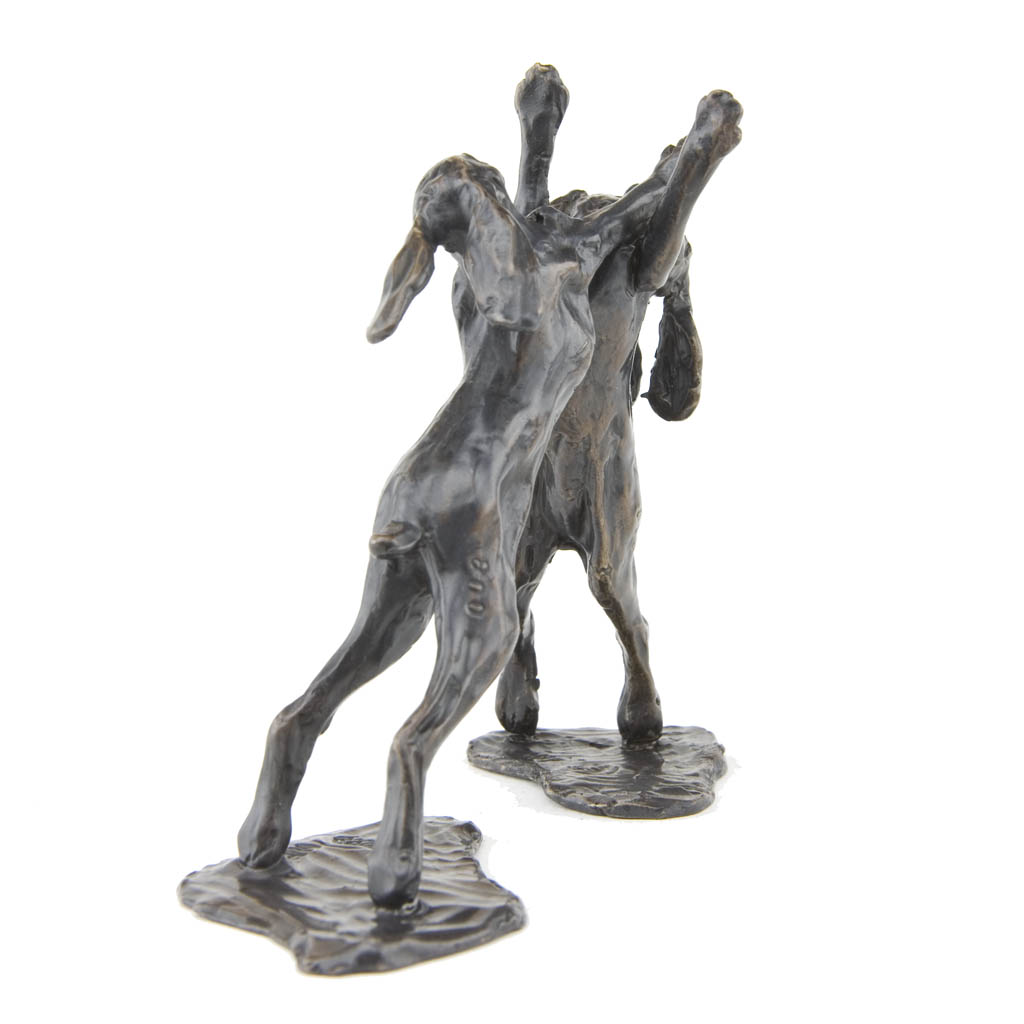 Bronze Hare Sculpture: Boxing Hares Maquette by Sue Maclaurin