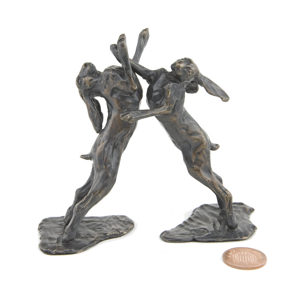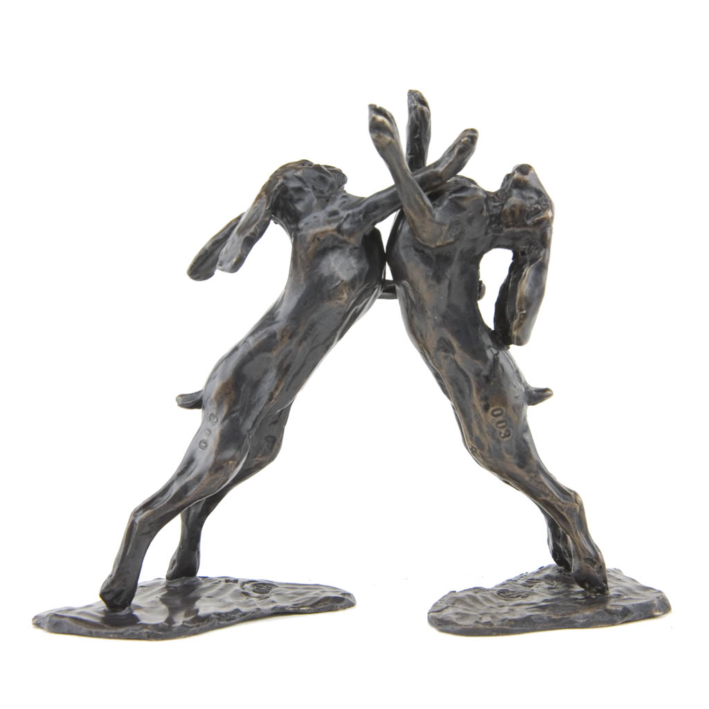 This Sue Maclaurin bronze sculpture, ‘Boxing Hares Maquette’ was cast by hand in a British foundry by Nelson & Forbes, as limited edition of just 500 castings. It is part of the Nelson & Forbes ‘Studio Maquette Collection’, which was launched in 2015 following requests by collectors for miniature sculptures that would make ideal gifts.