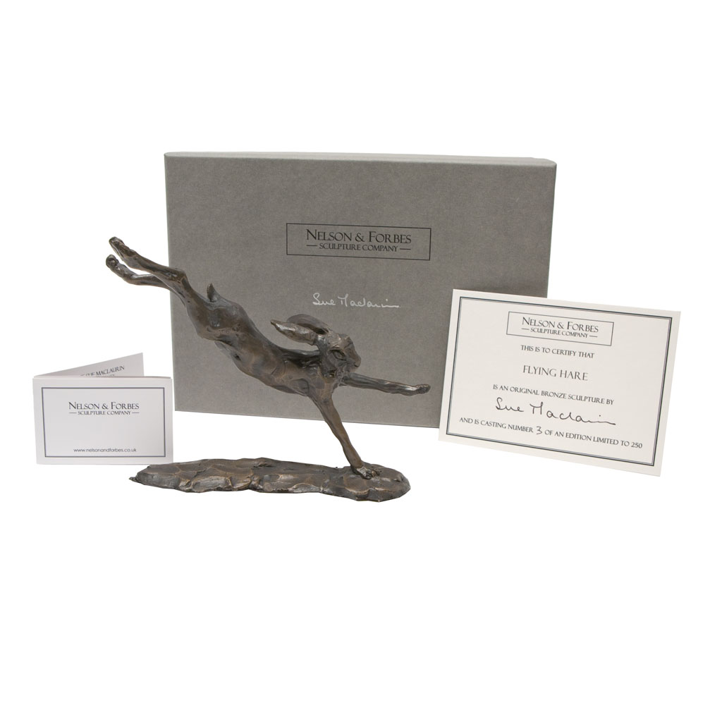 Bronze Hare Sculpture: Flying Hare by Sue Maclaurin