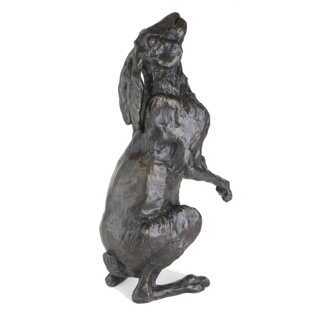 Measuring 39cm/15 ½” high, this noble sculpture captures the mystical hare in arguably its most iconic pose, gazing serenely at the moon and stars above.