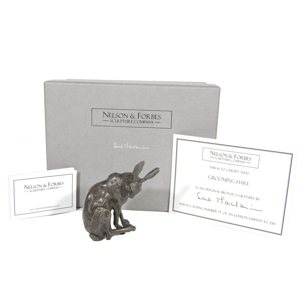 This solid bronze sculpture by Sue Maclaurin of a Grooming Hare is a foundry casting of her original sculpture and took two weeks to create by hand in a British foundry and is limited to an edition of just 250 castings.