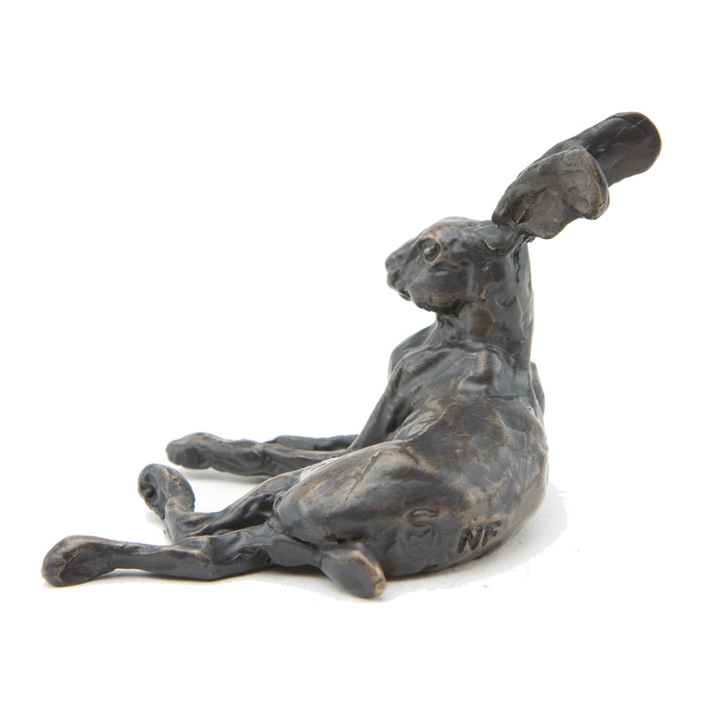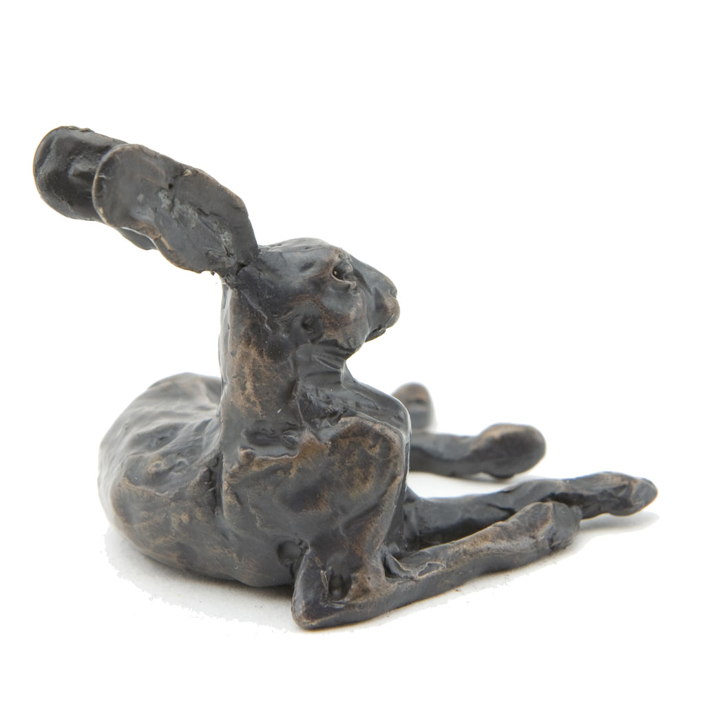 Bronze Hare Sculpture: Lying Hare Maquette by Sue Maclaurin