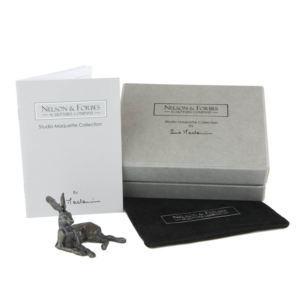 This Sue Maclaurin bronze sculpture of a Lying Hare Maquette was cast by hand in a British foundry by Nelson & Forbes, as limited edition of just 500 castings. It is part of the Nelson & Forbes ‘Studio Maquette Collection’, which was launched in 2015 following requests by collectors for miniature sculptures that would make ideal gifts.