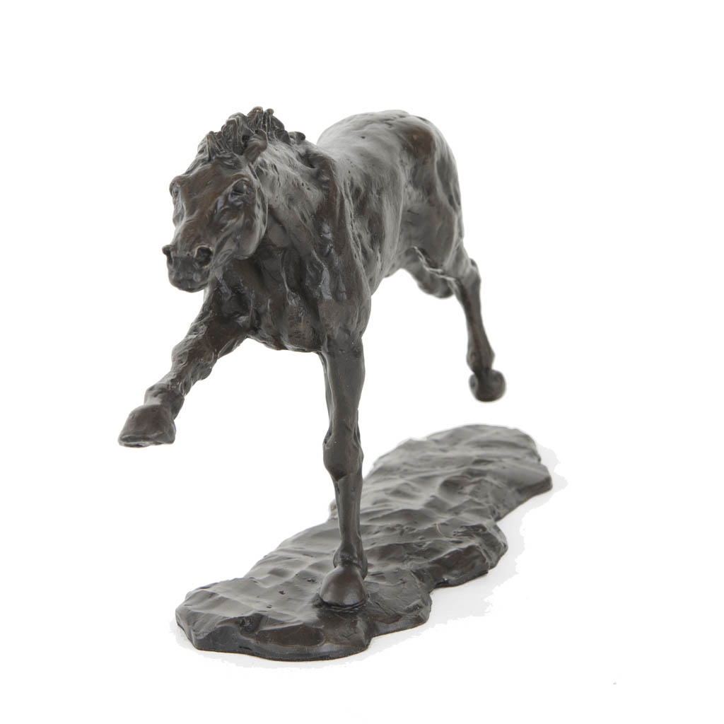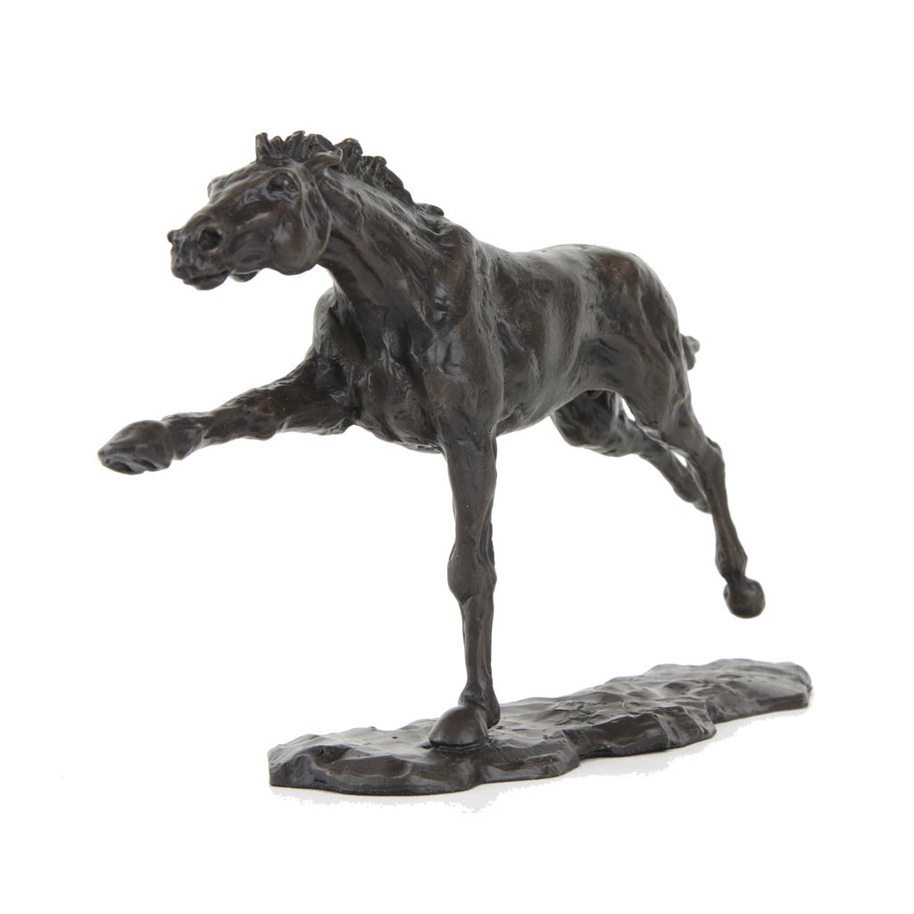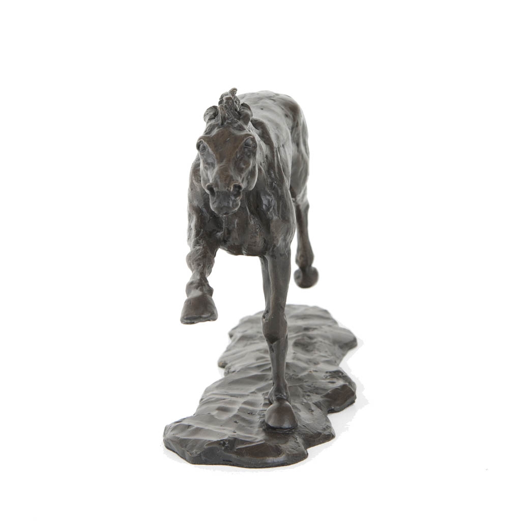 Poised on just one hoof, the sculptor has in this case specifically chosen to deliberately showcase the stunning qualities of the final casting material in her choice of pose. The strength of foundry bronze allows the entire weight of the horse’s body to balance one slender limb, while the finesse of casting afforded by the bronze allows for every muscle and tendon of the artist’s original sculpture to be captured and highlighted in the final casting.