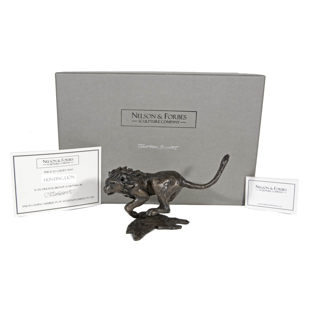This stunning Jonathan Sanders bronze sculpture of a Hunting Lion was cast by hand in a British foundry by Nelson & Forbes, in an edition of just 250 castings and depicts a magnificent Lion pursuing its quarry across the African savannah.