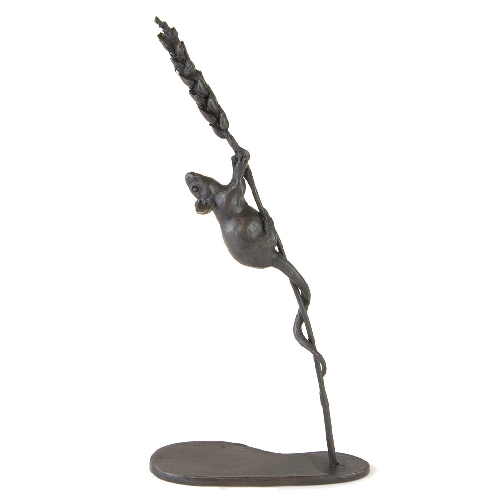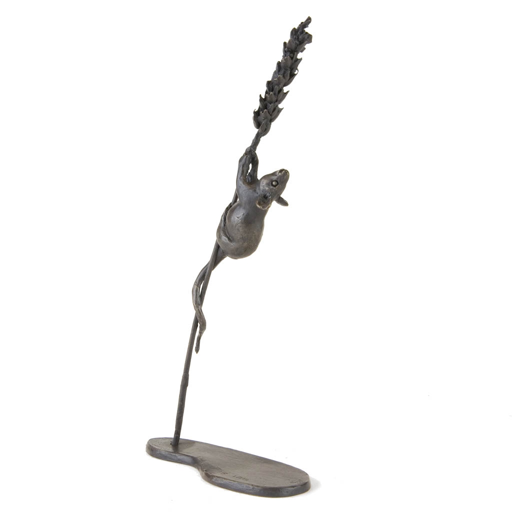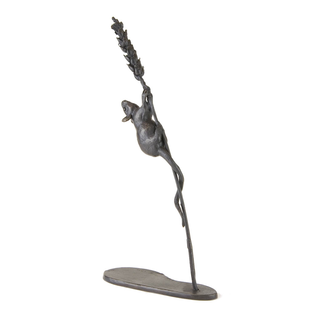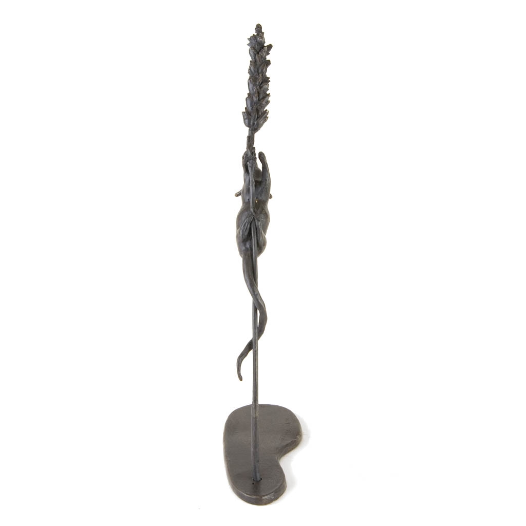Bronze Mouse Sculpture: Climbing Mouse (on Wheat) by Jonathan Sanders