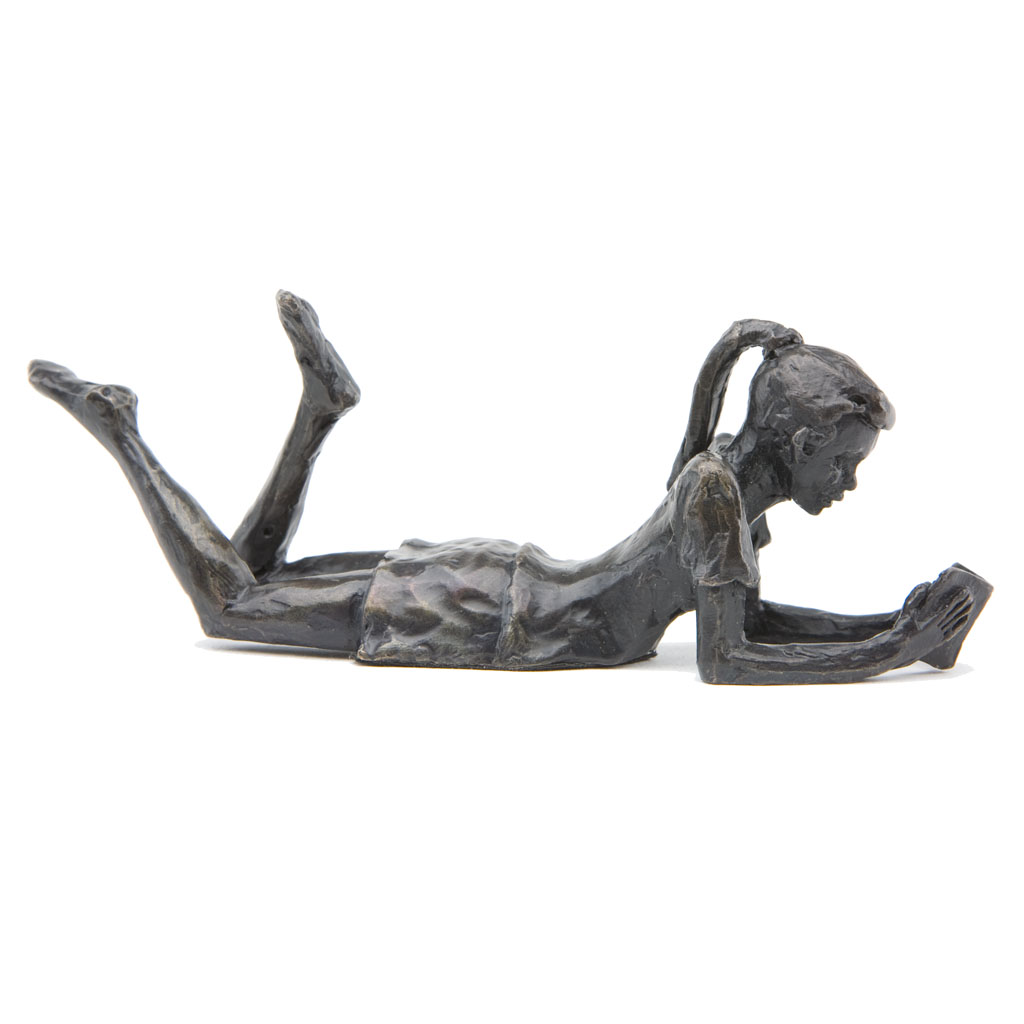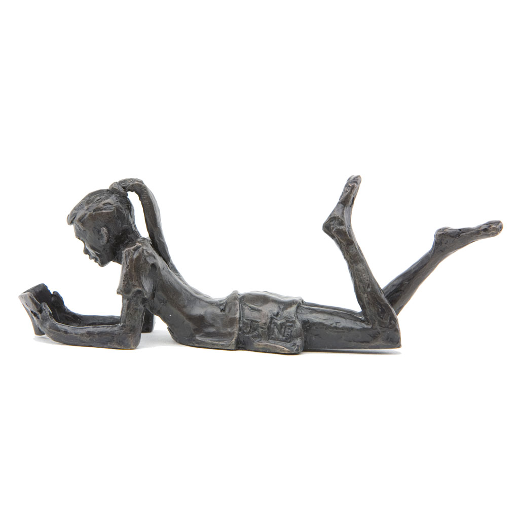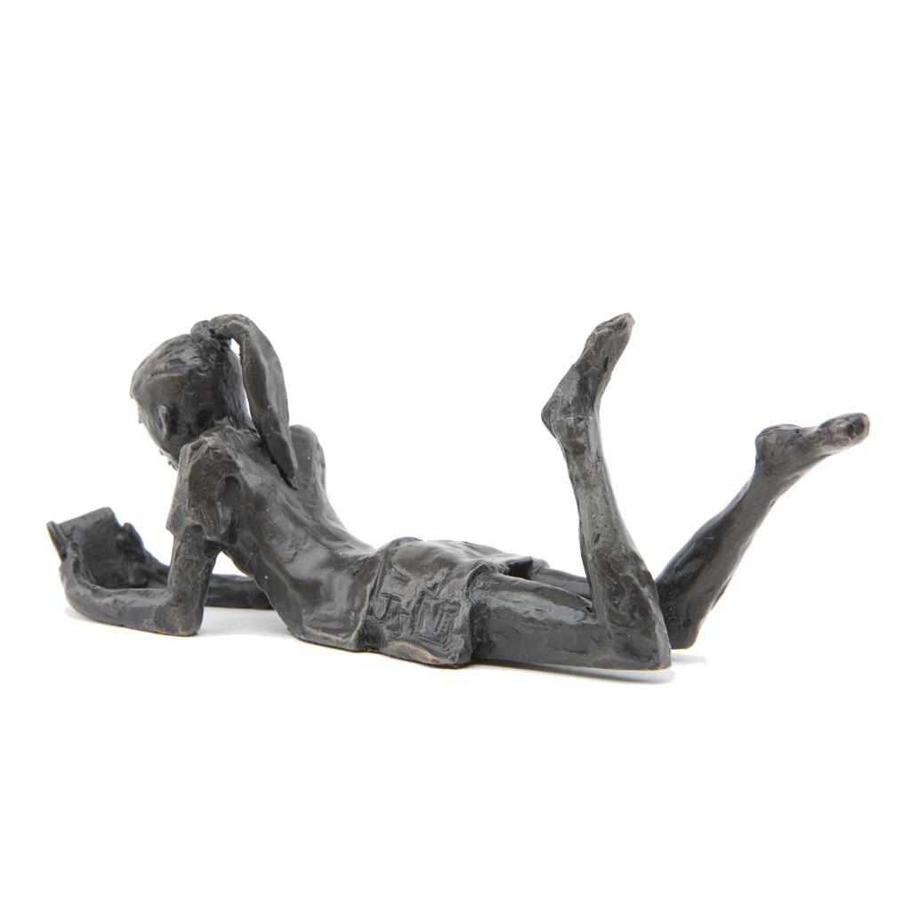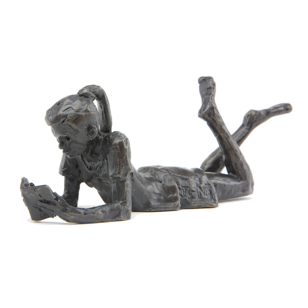 Depicting a delightfully carefree child reading a book, this beautiful sculpture is presented in a high quality English hand made gift box and is accompanied by a numbered booklet of information, signed by the artist, Jonathan Sanders. This booklet is your guarantee that this is an original foundry casting of Jonathan Sanders’s work that he has personally approved.