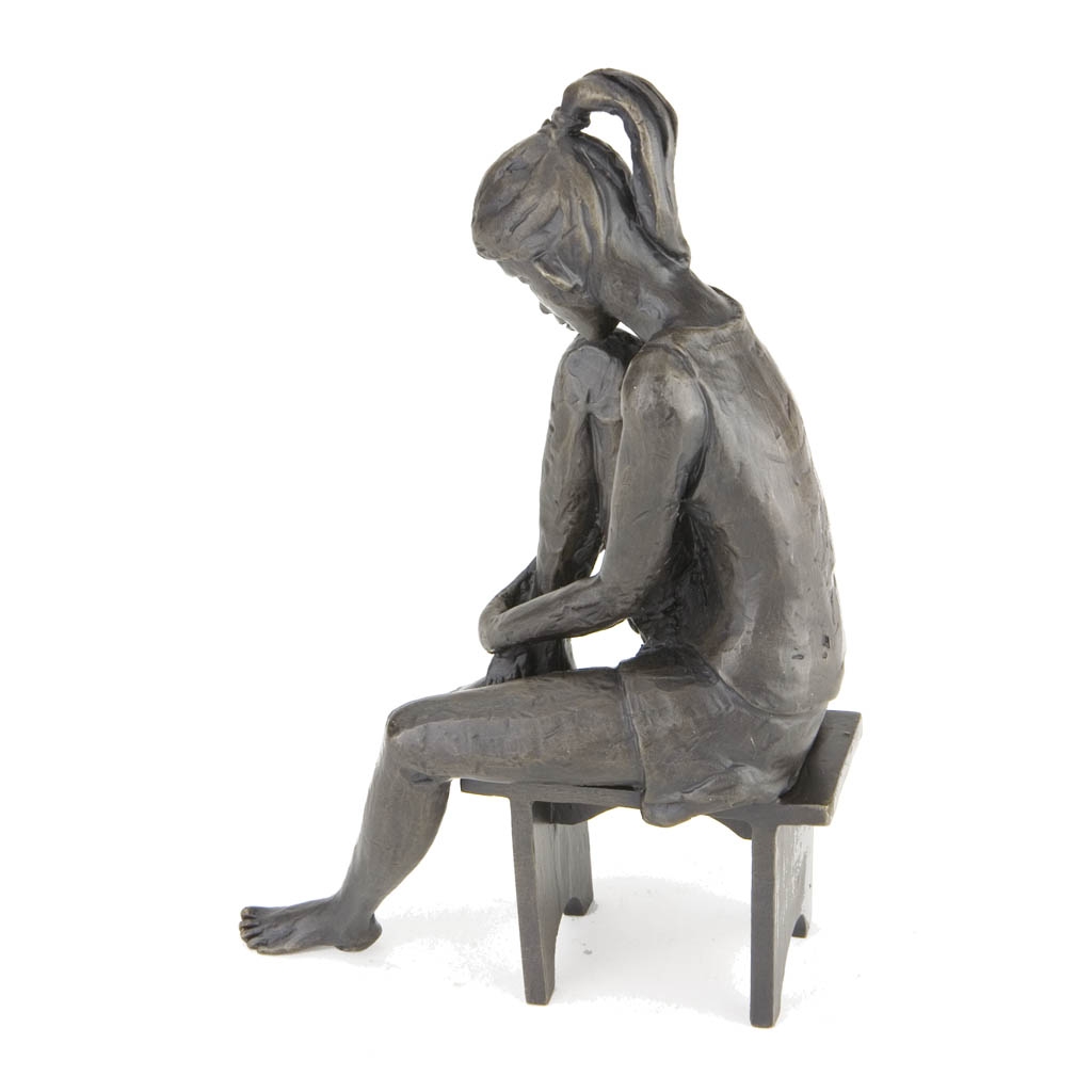 Jonathan’s original ‘Sitting Girl’ sculpture proved very successful, with collectors requesting that he create the same pose in a larger size.  ‘Large Resting Dancer’ is the result.  Whether displayed on her own, or together with Large Daydreaming Dancer and Large Dancer Tying Hair, she makes an elegant addition to any situation.