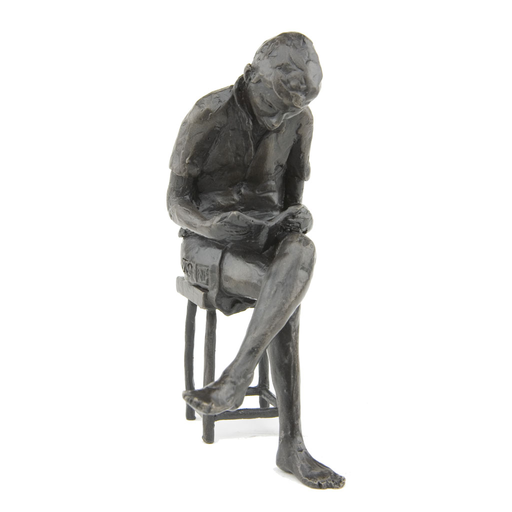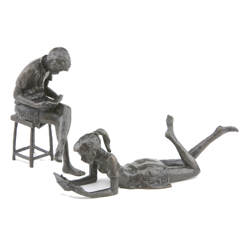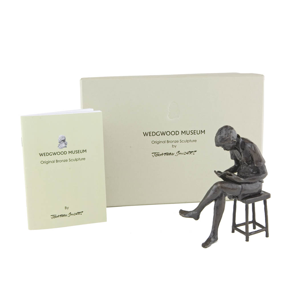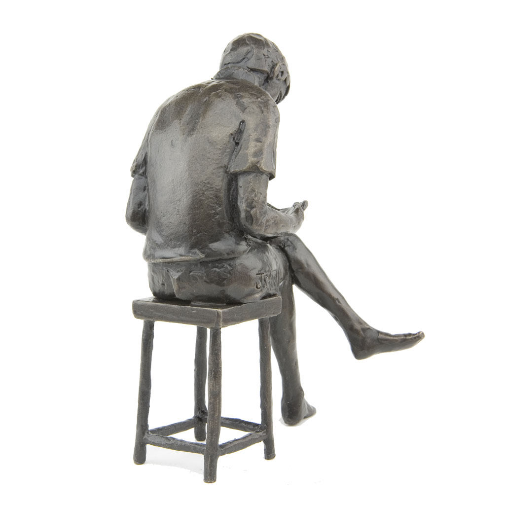 Depicting a boy sitting on a stool and reading a book, the sculpture is presented in a high quality English hand made gift box and is accompanied by a numbered booklet of information, signed by the artist, Jonathan Sanders. The booklet is your guarantee that this is an original foundry casting of Jonathan Sanders’s work that he has personally approved.
