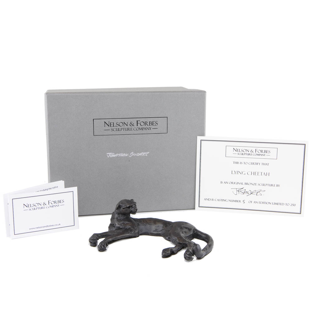 This beautiful sculpture of a ‘Lying Cheetah’ by Jonathan Sanders perfectly captures a cheetah relaxing in the African sun.  It was cast by hand in a British foundry by Nelson & Forbes, in a limited edition of just 250 castings.