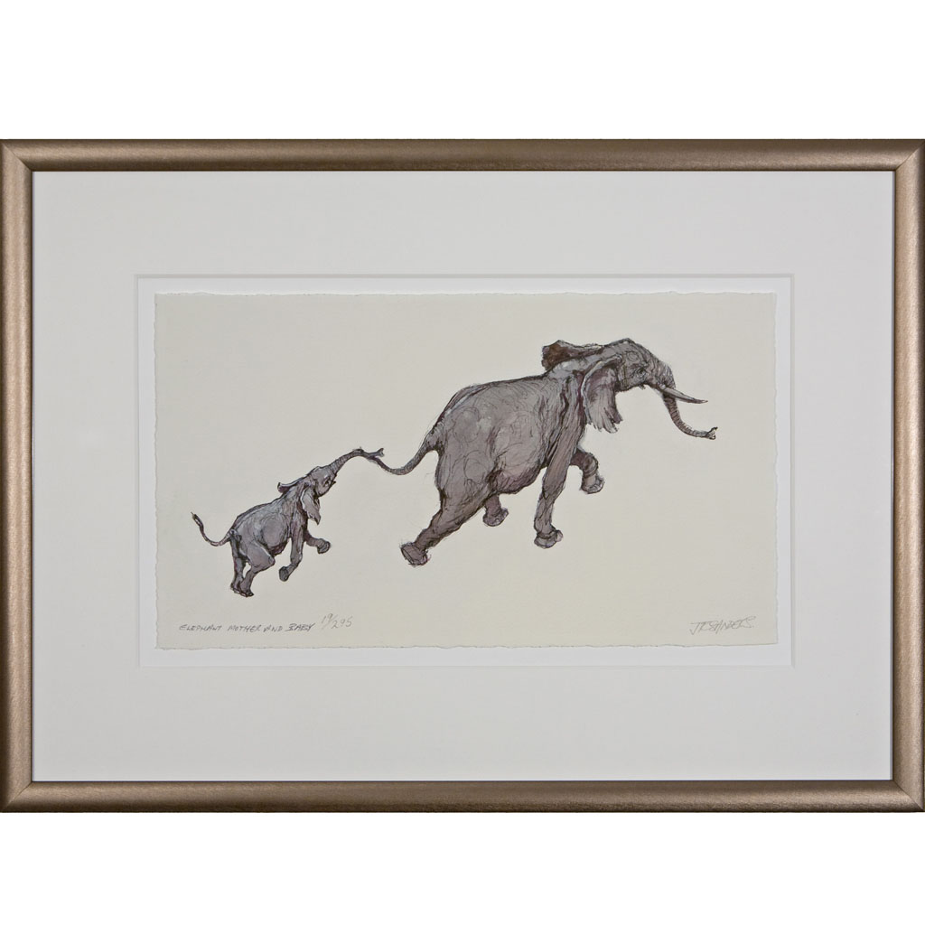 Limited Edition Elephant Print: Elephant Mother and Baby by Jonathan Sanders (Framed)